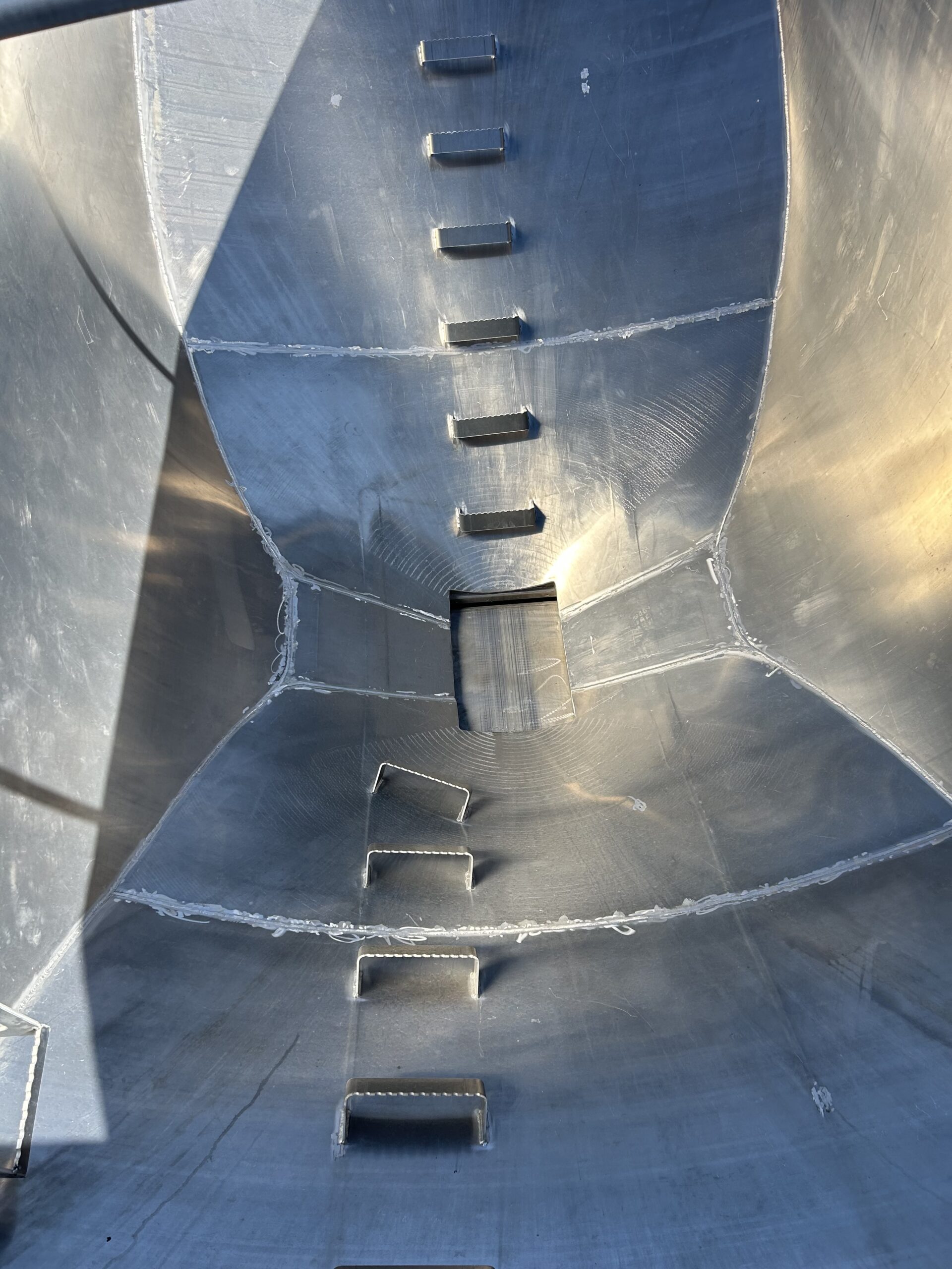 “POLISHED” roll-formed barrel-style aluminum side walls for easy clean out.